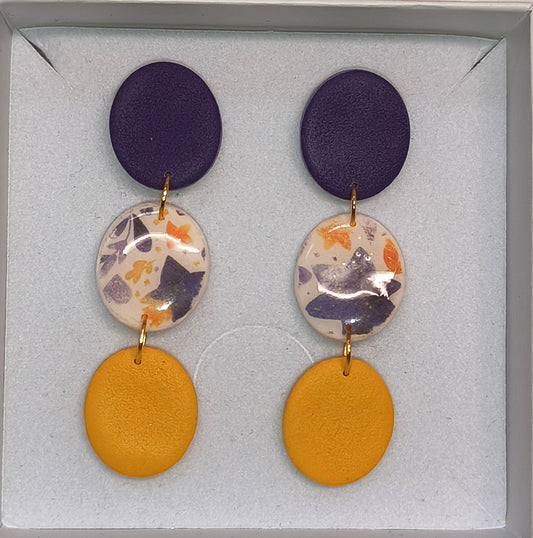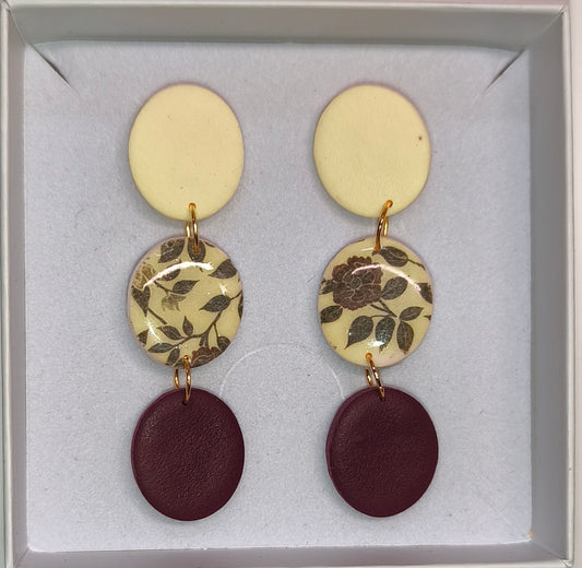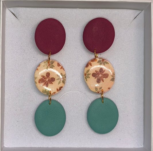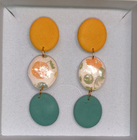 Preciosa colección realizada en arcilla polimérica con transferencia de papeles pintados estilo años 50, combinados con discos de colores vibrantes y divertidos.