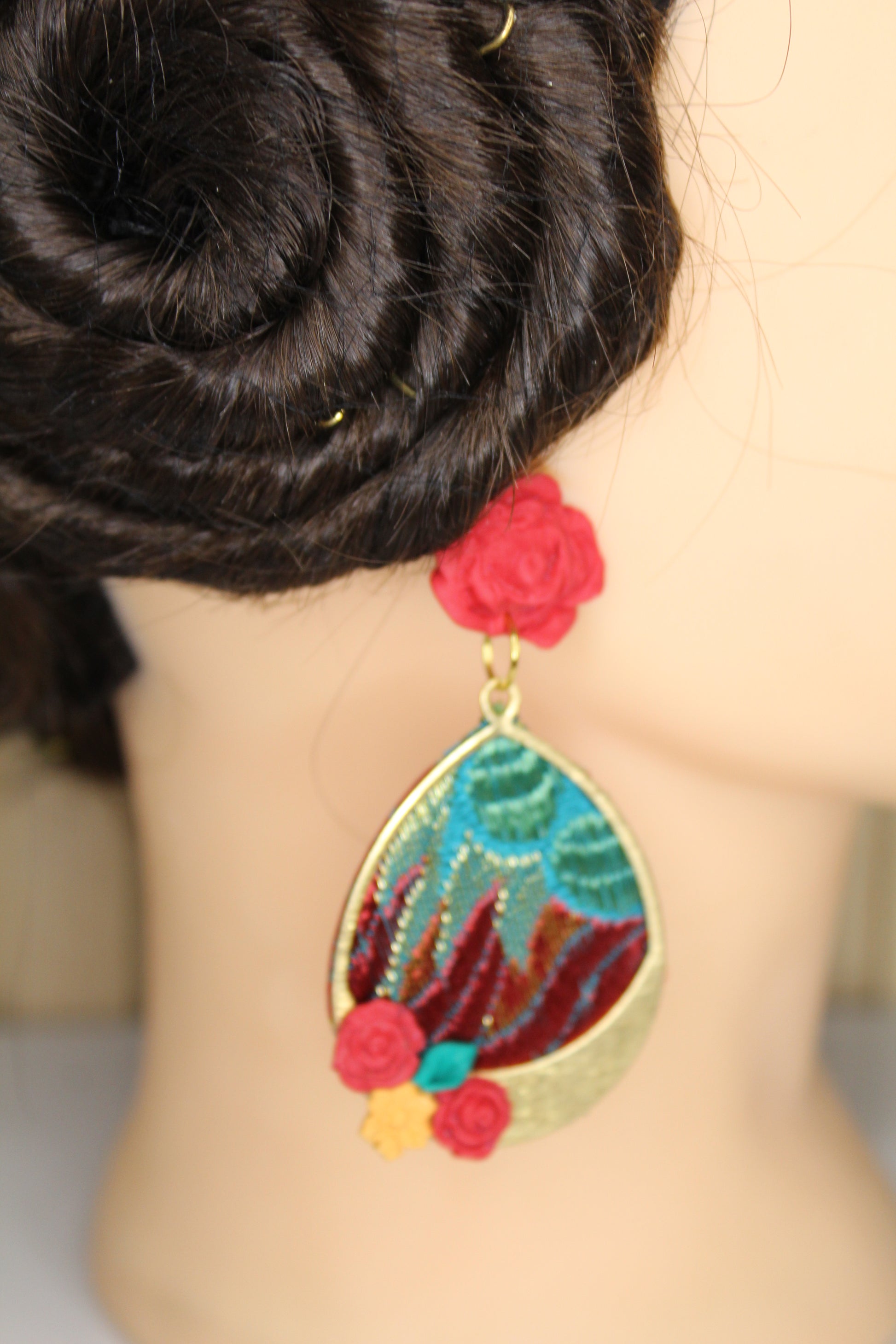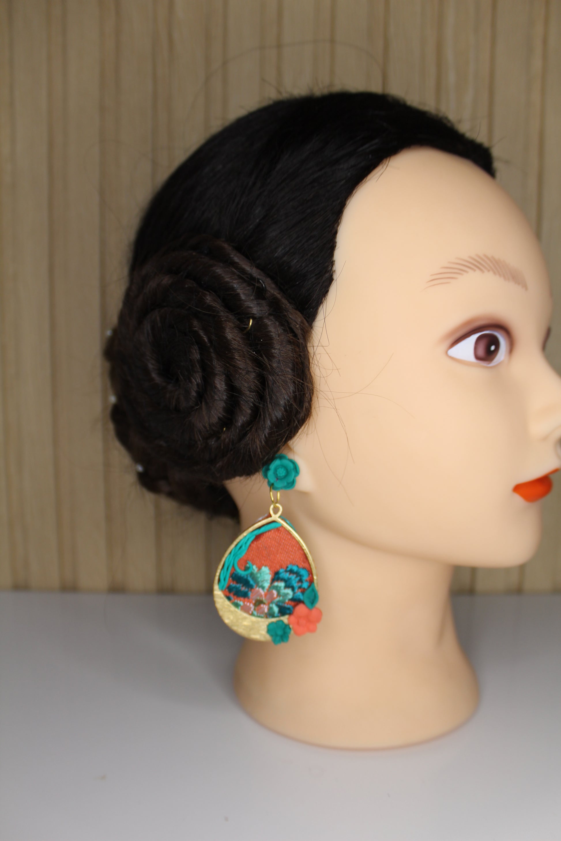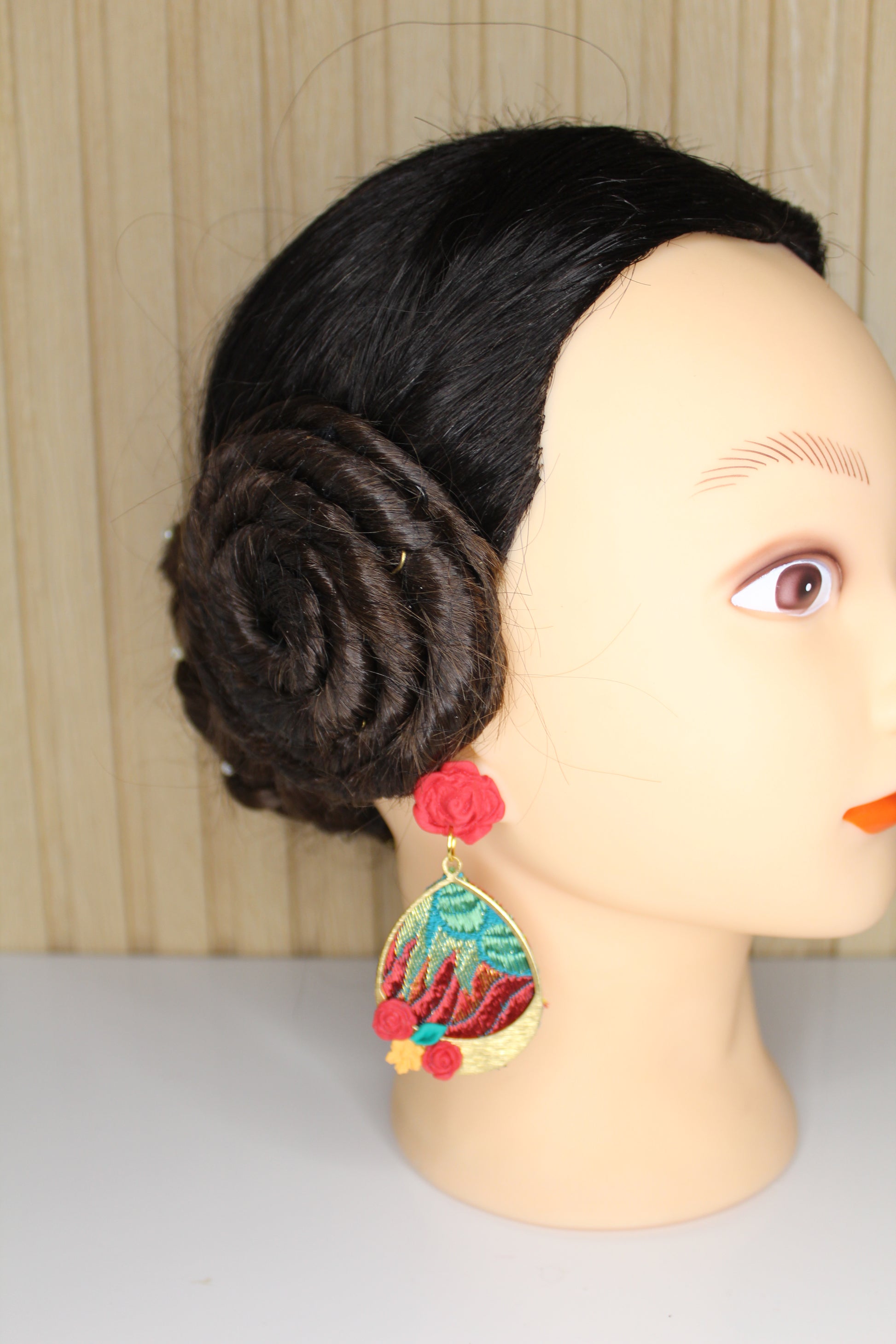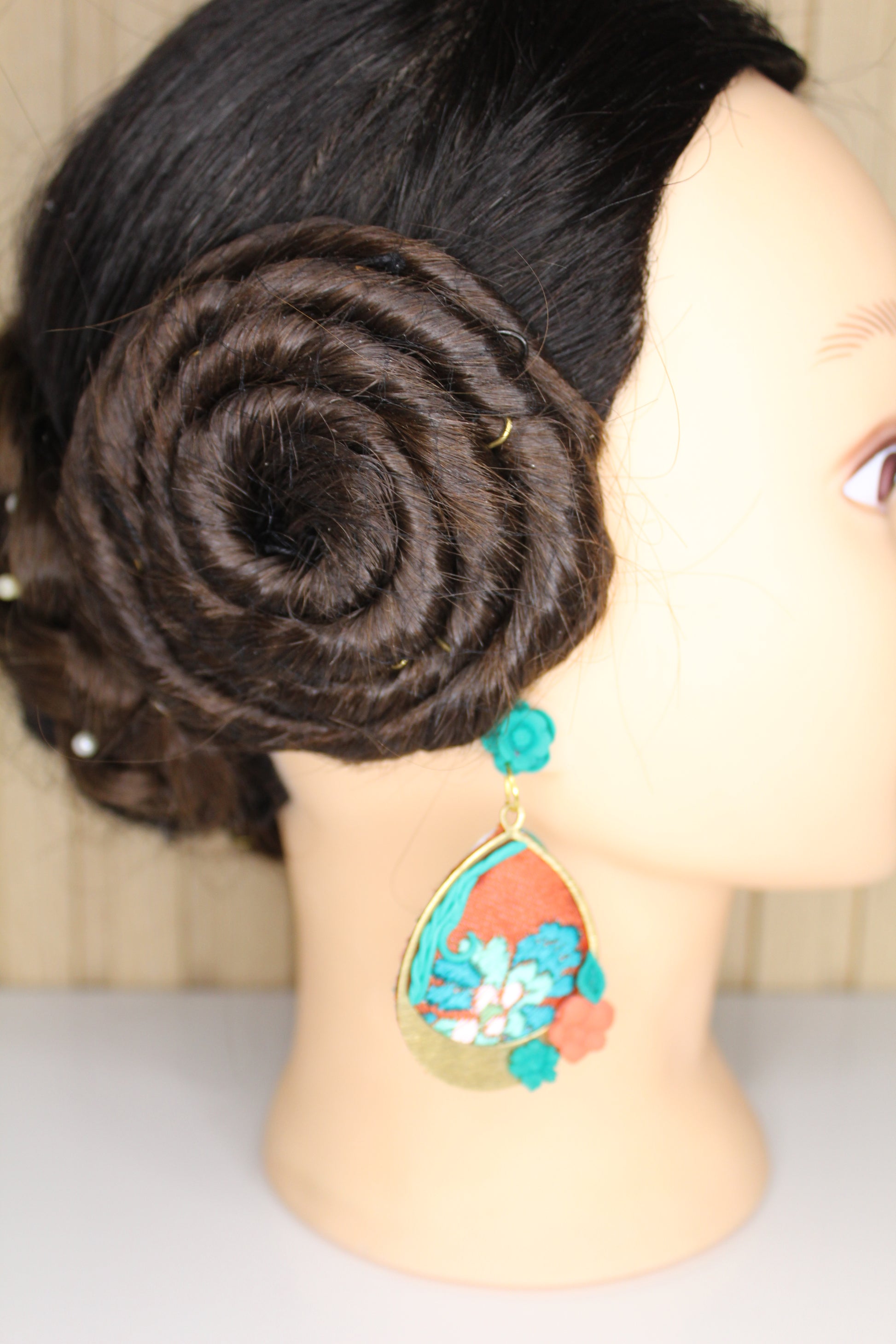 Nosotras lo hacemos posible. Estos pendientes personalizados se realizan con un retal.de tu vestido y los personalizamos con el color contraste que tú elijas.