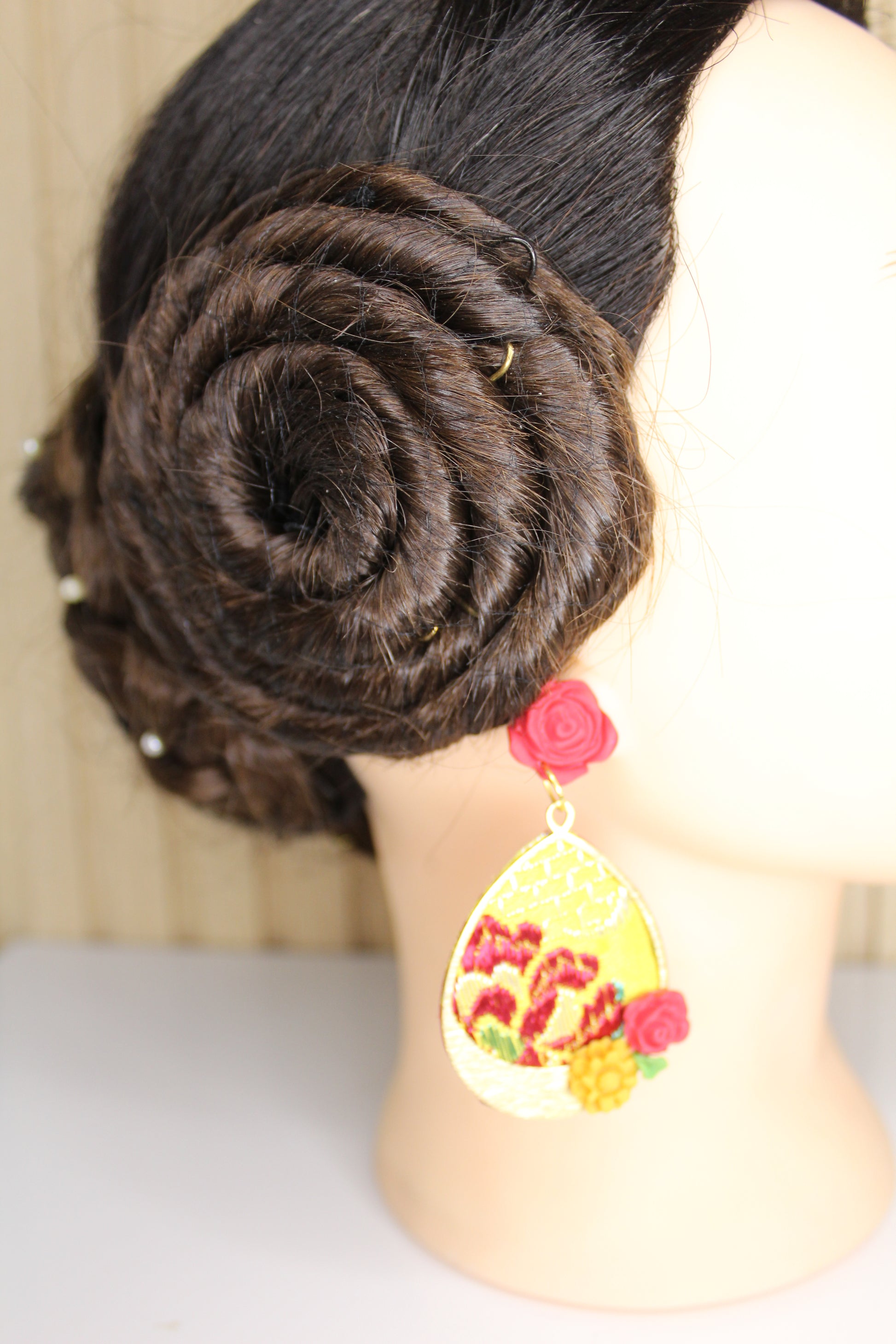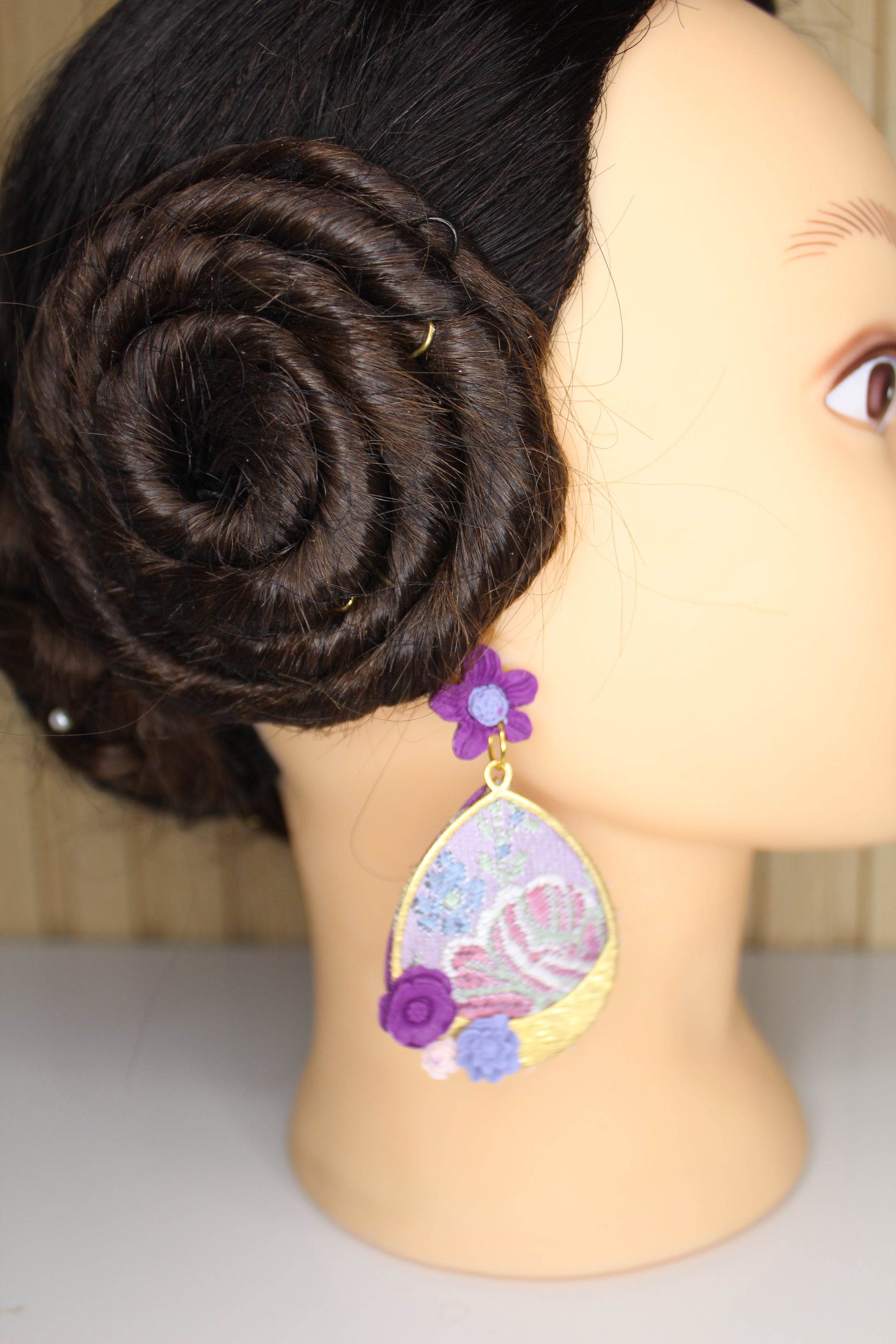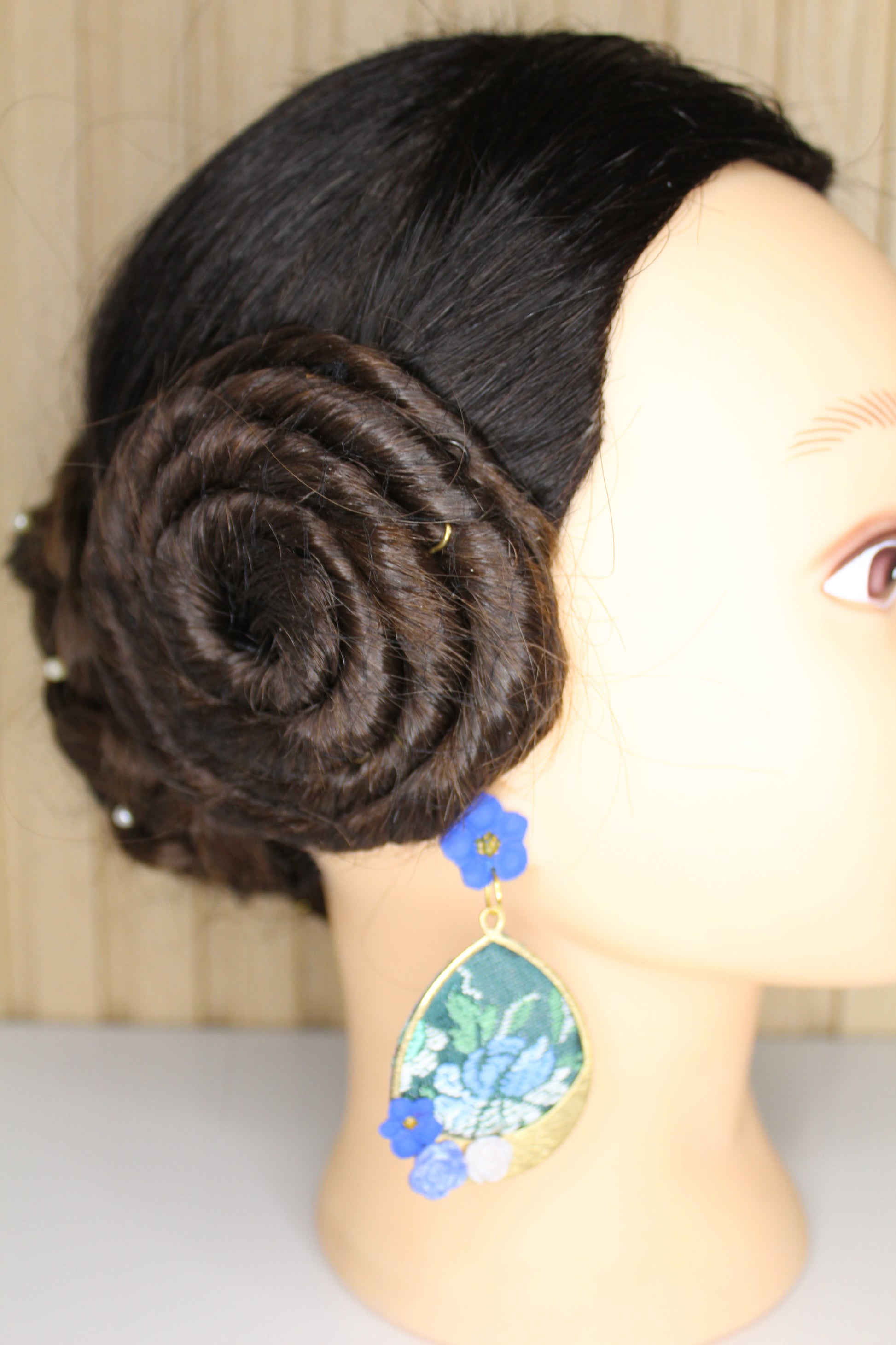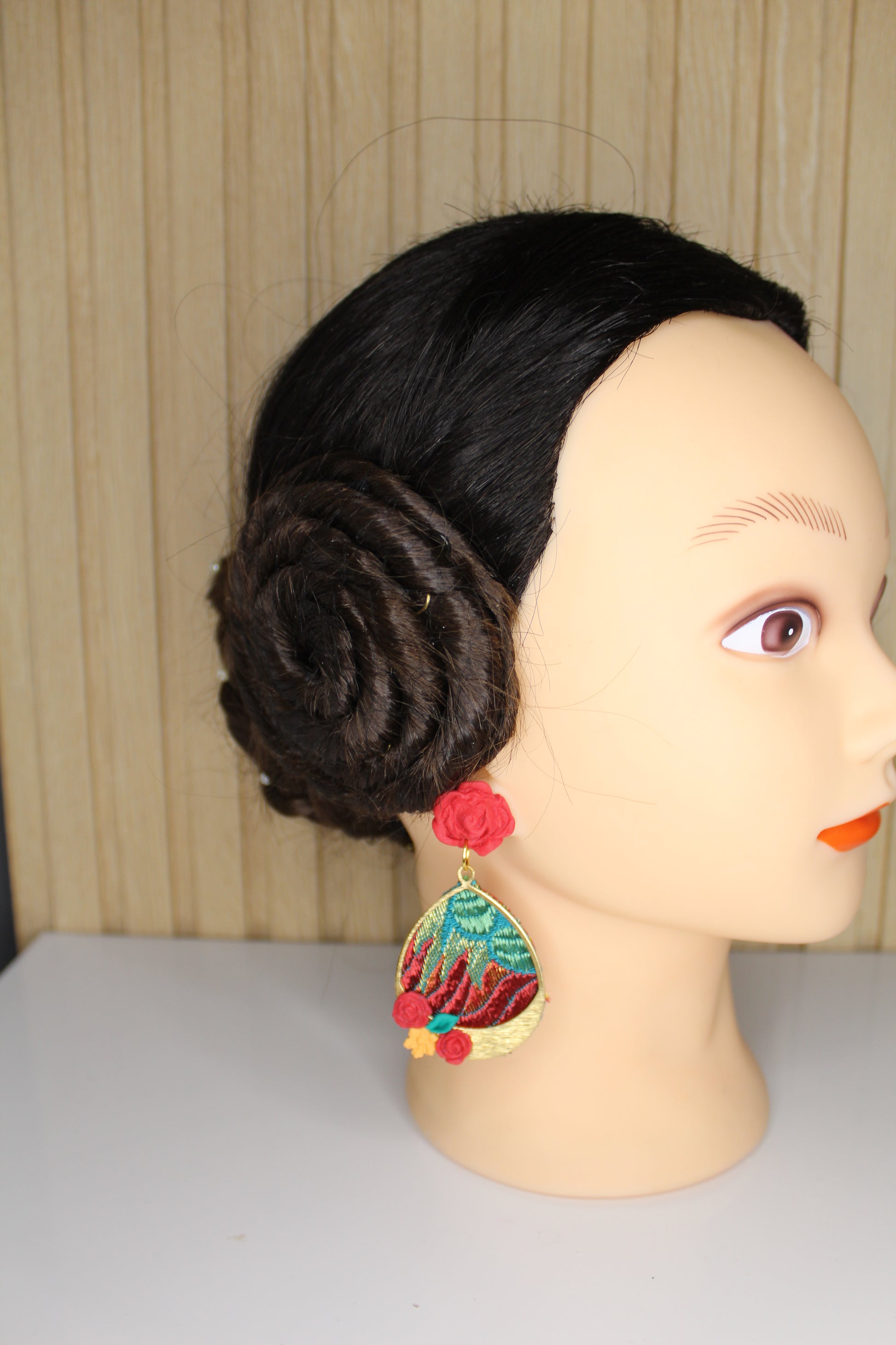 Nosotras lo hacemos posible. Estos pendientes personalizados se realizan con un retal.de tu vestido y los personalizamos con el color contraste que tú elijas.