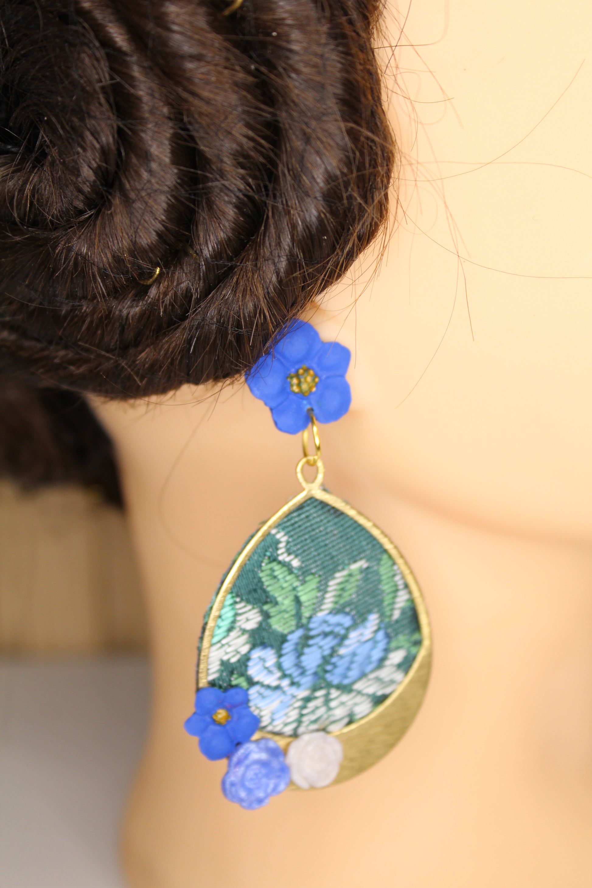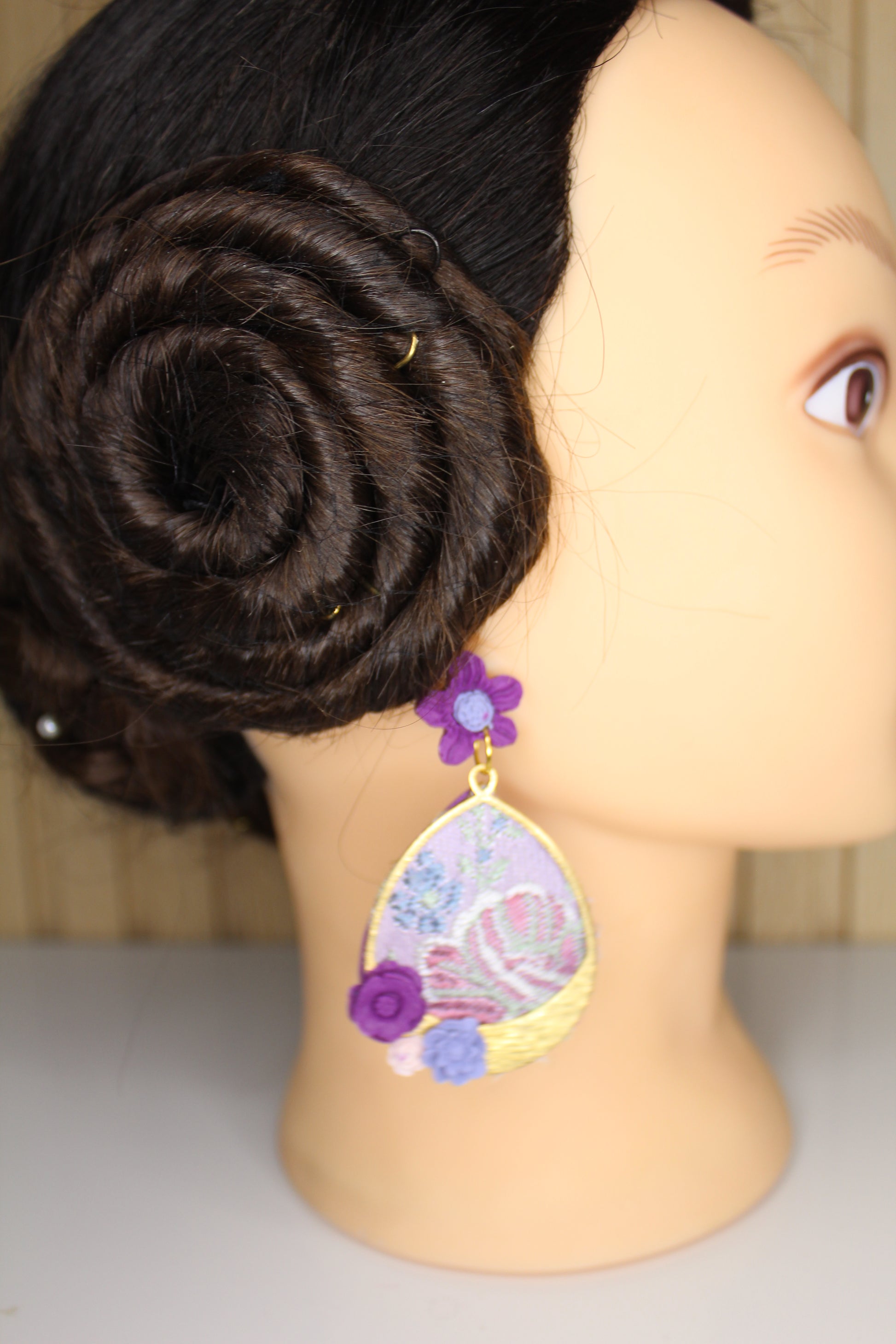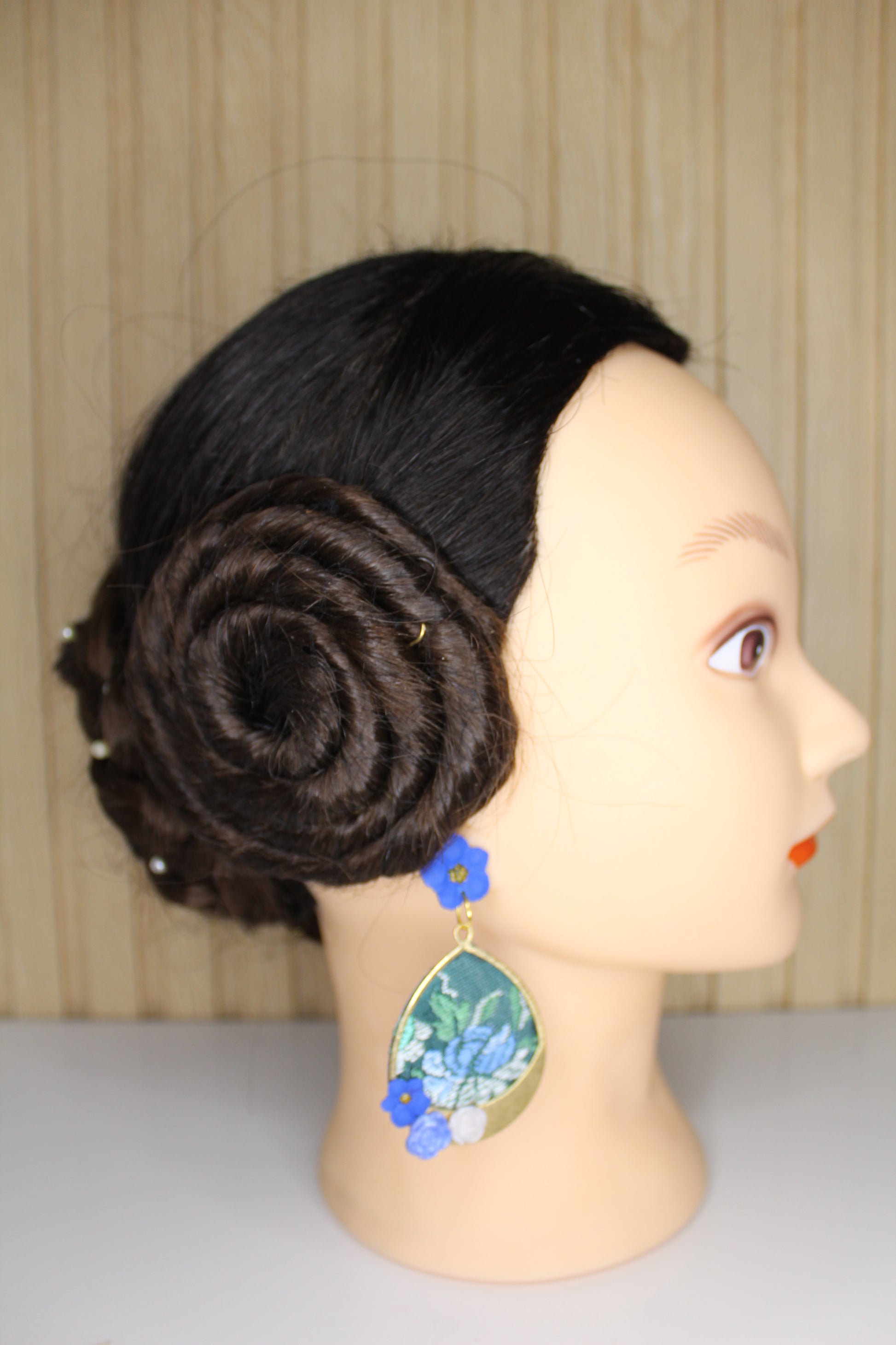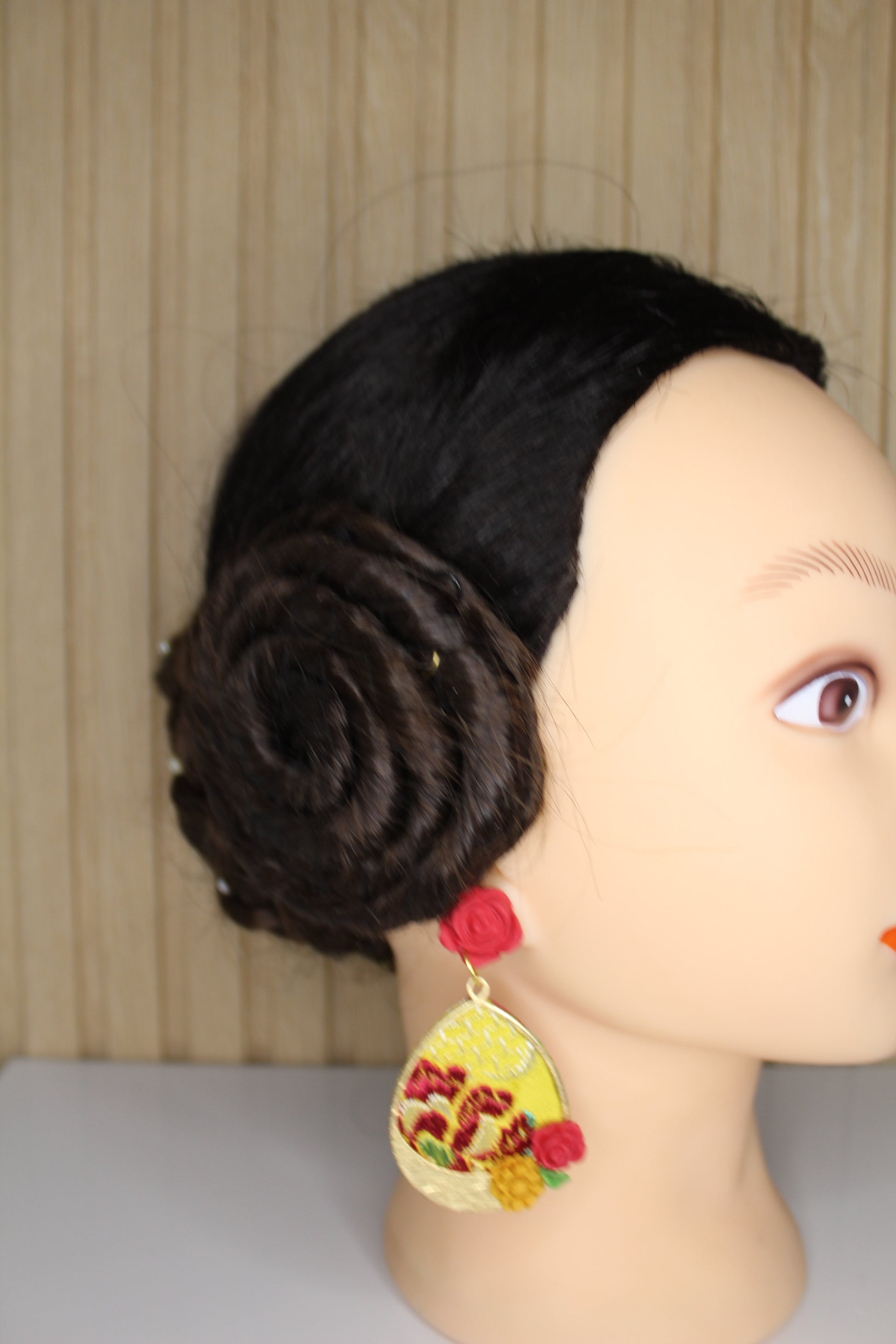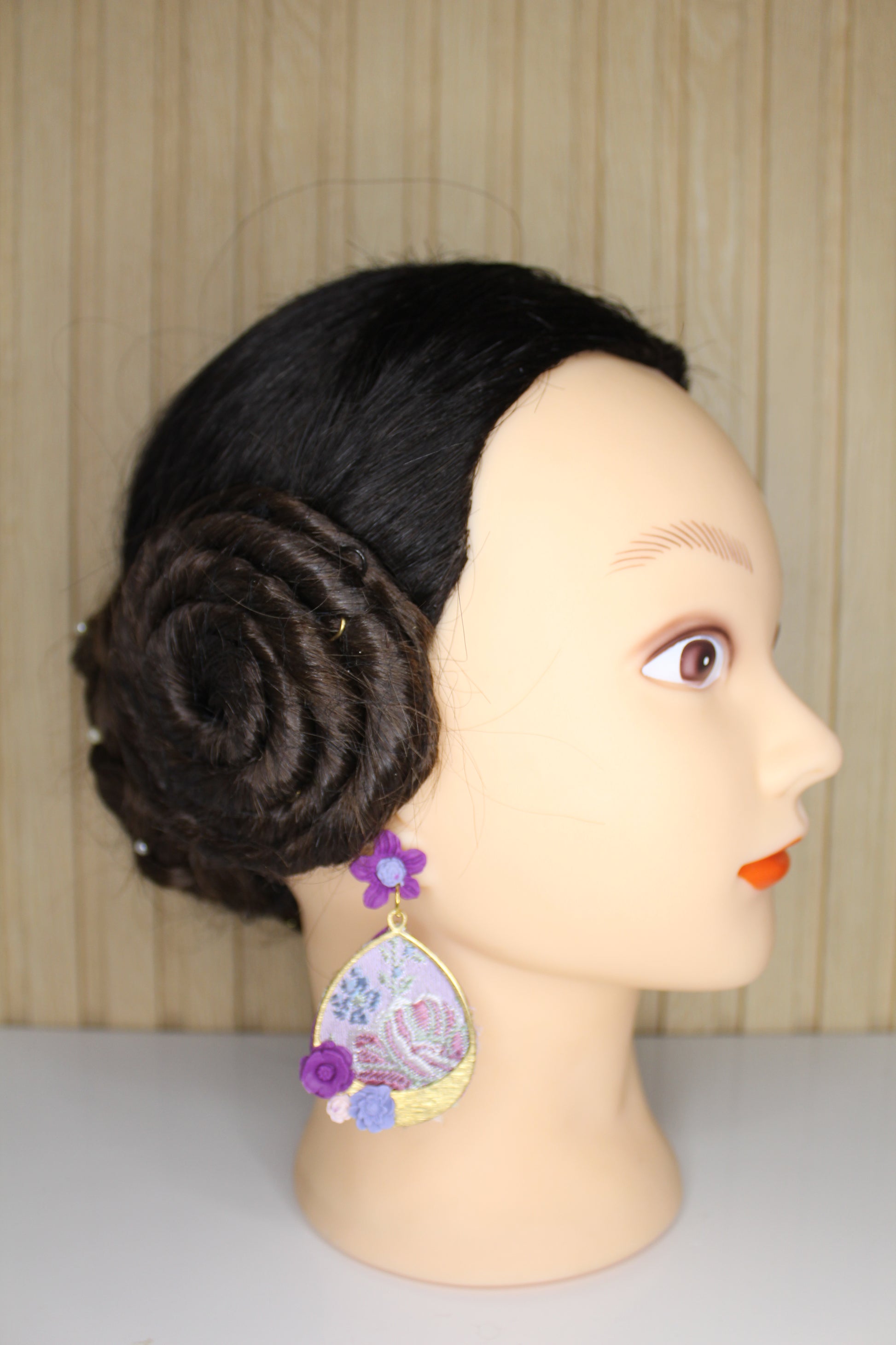 Nosotras lo hacemos posible. Estos pendientes personalizados se realizan con un retal.de tu vestido y los personalizamos con el color contraste que tú elijas.