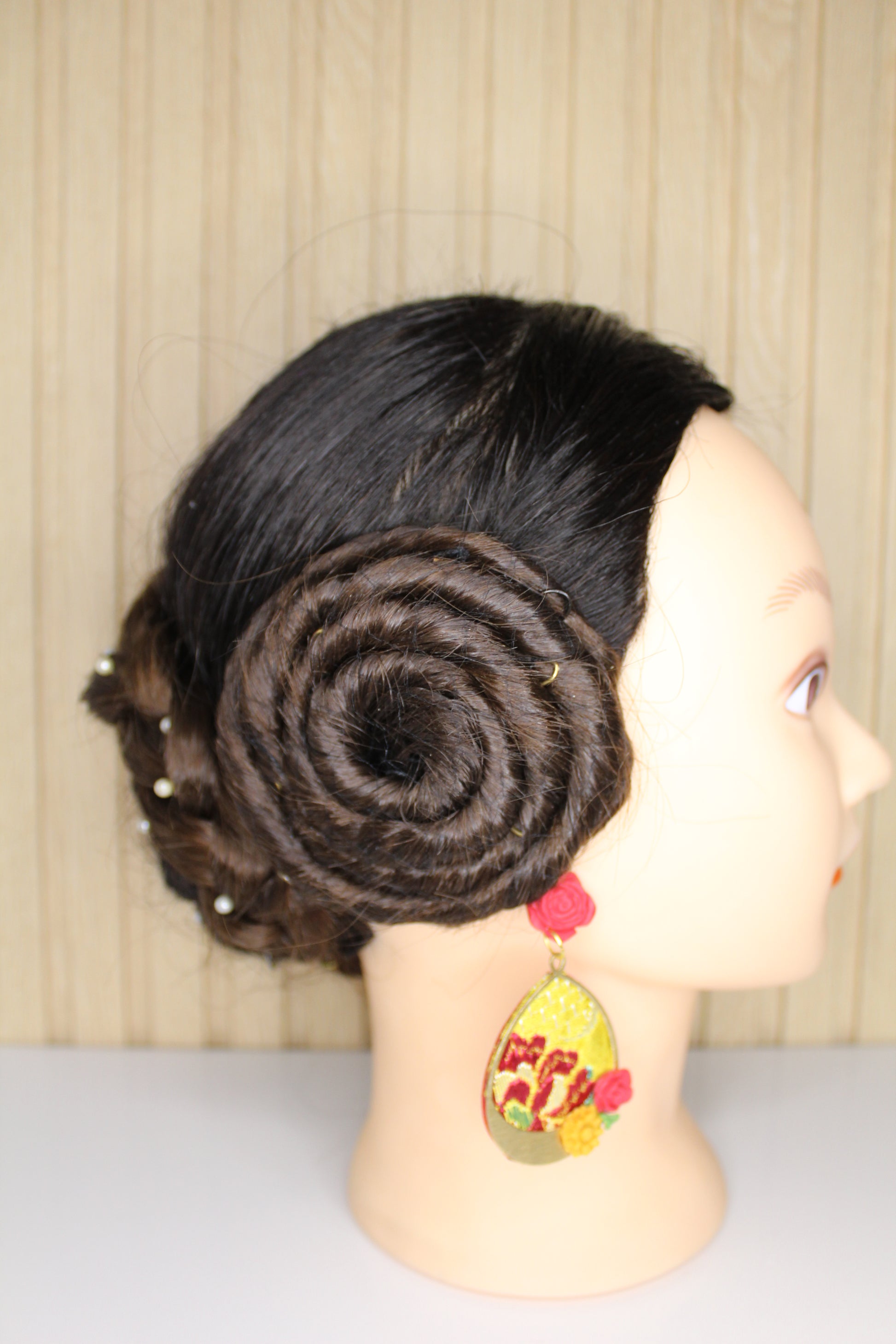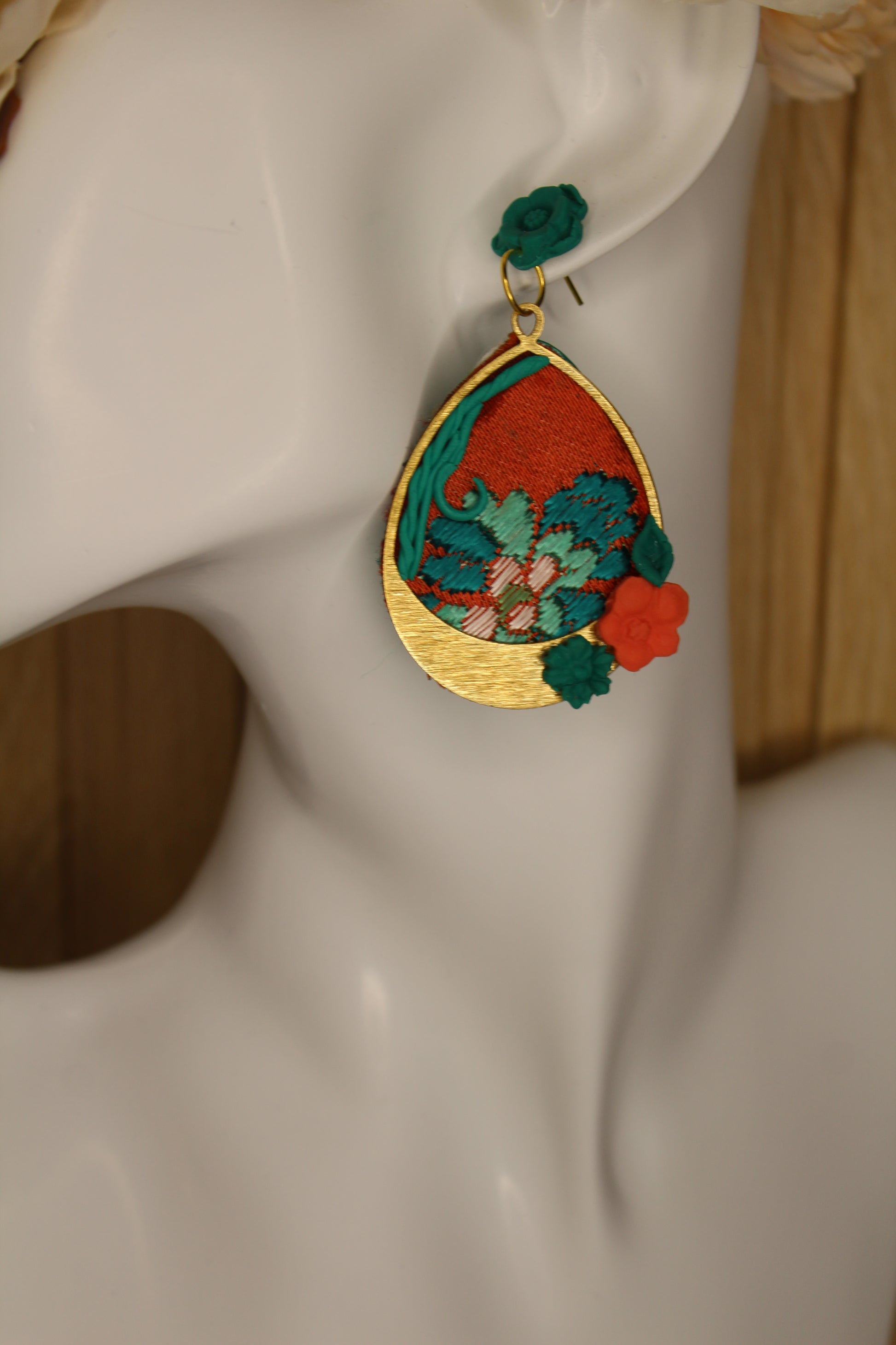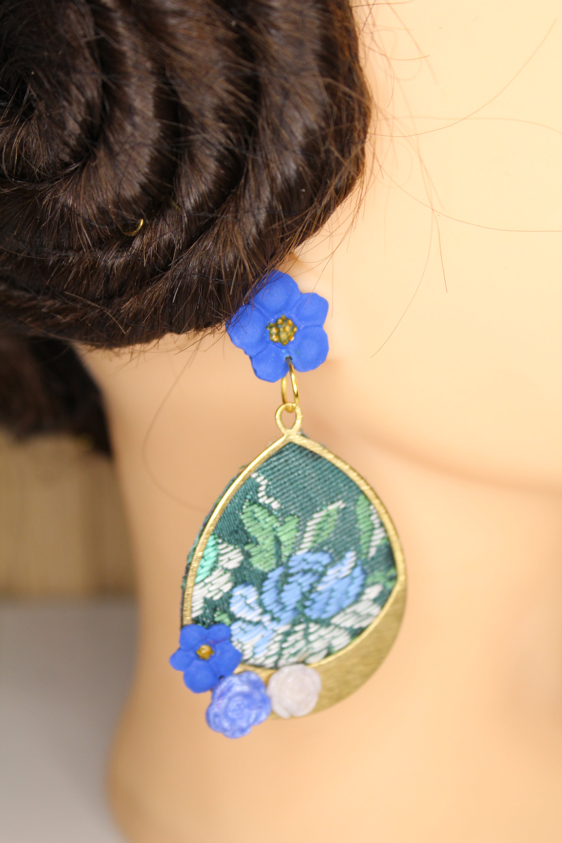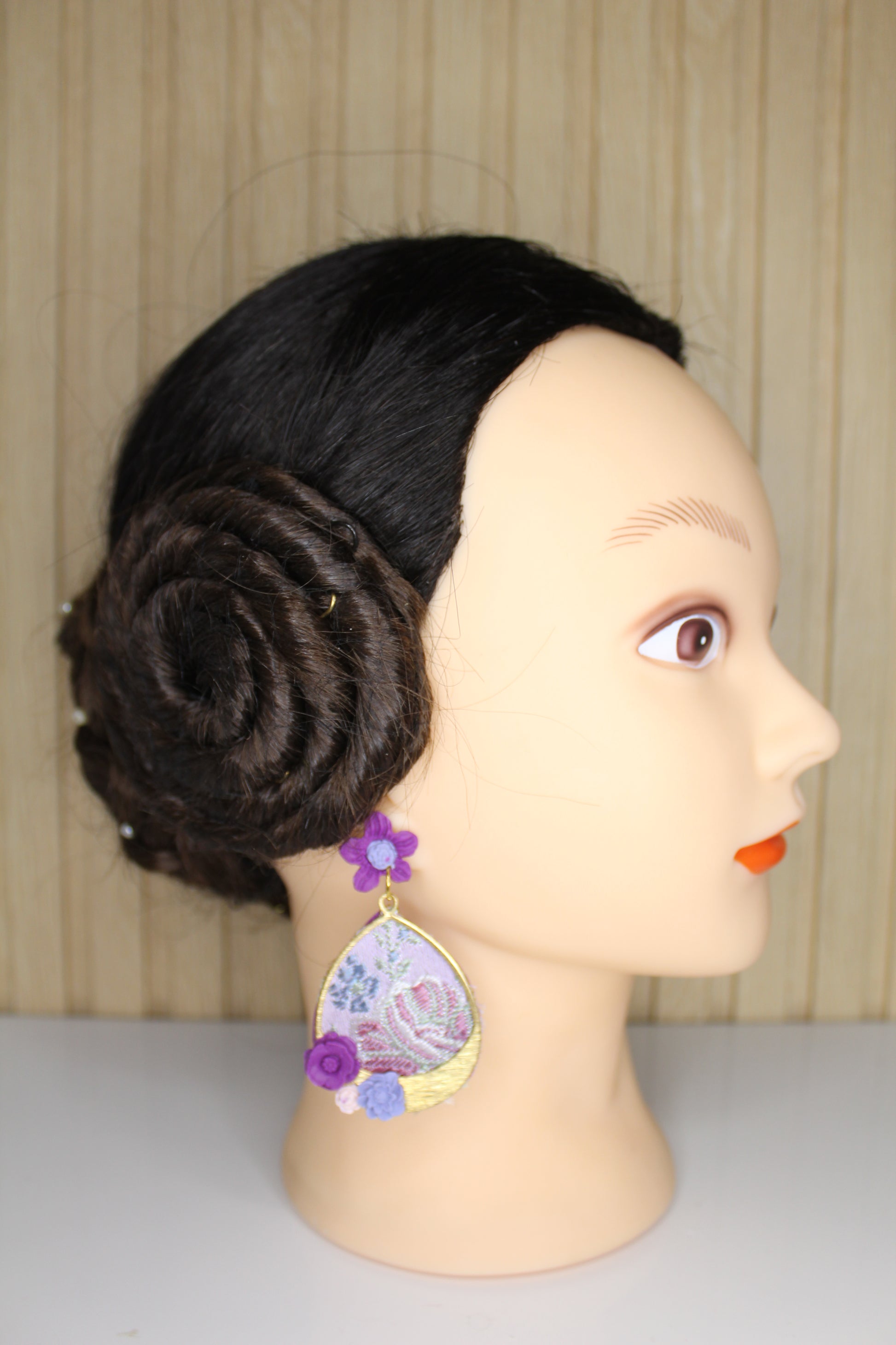 Nosotras lo hacemos posible. Estos pendientes personalizados se realizan con un retal.de tu vestido y los personalizamos con el color contraste que tú elijas.