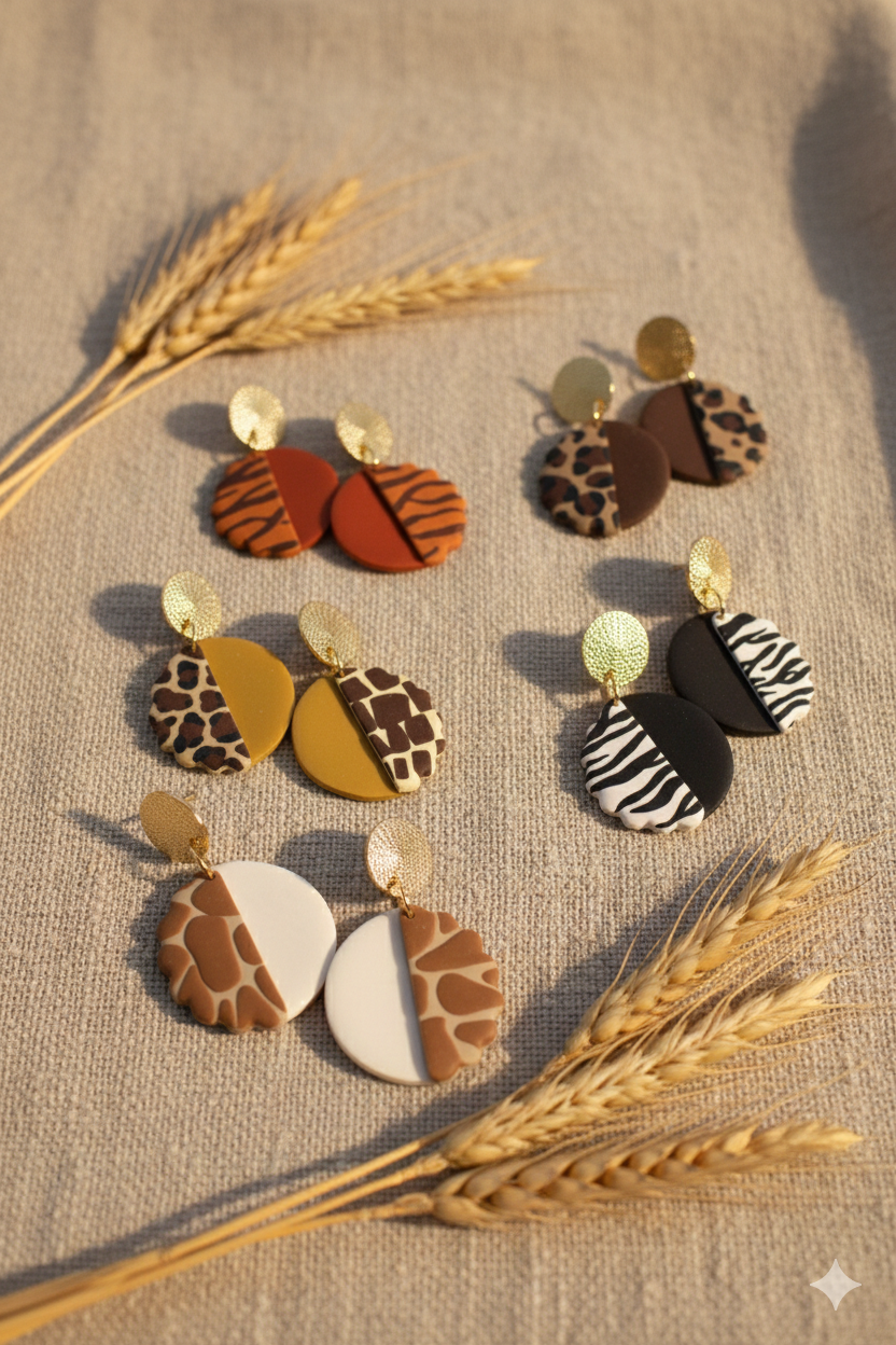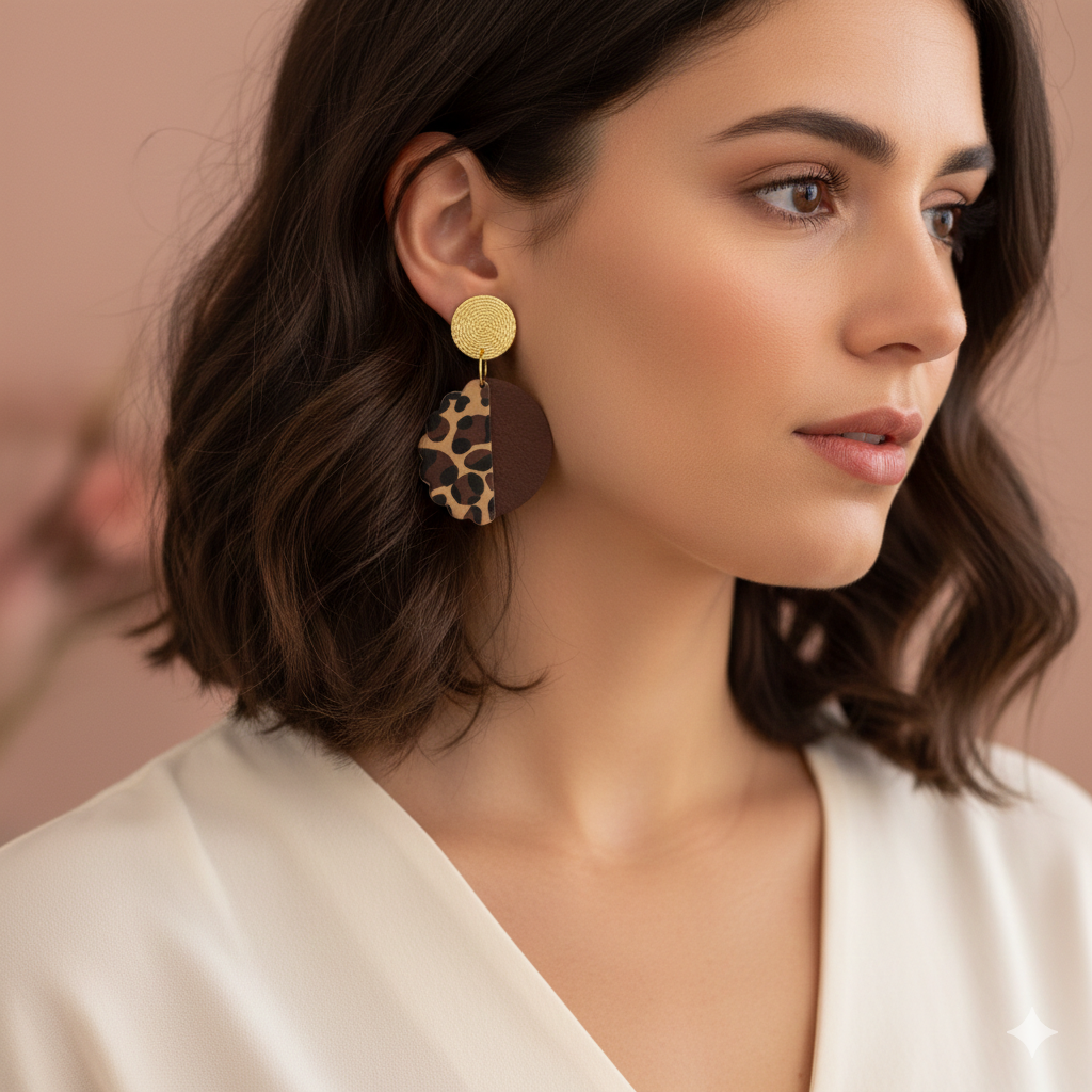 Ligeros, exóticos y elegantes. Estampado animal combinado con efecto cuero y coronado con un disco dorado.