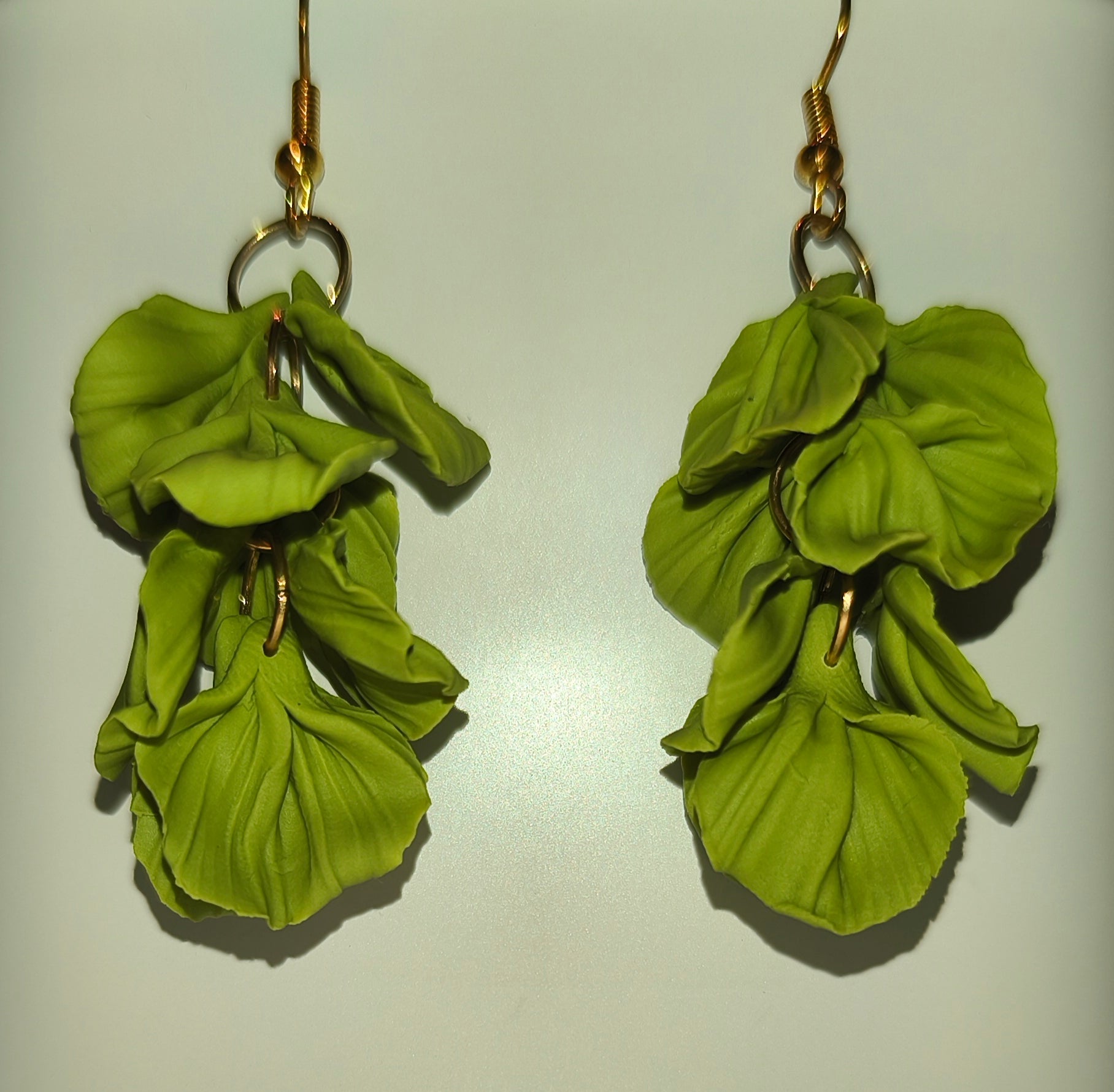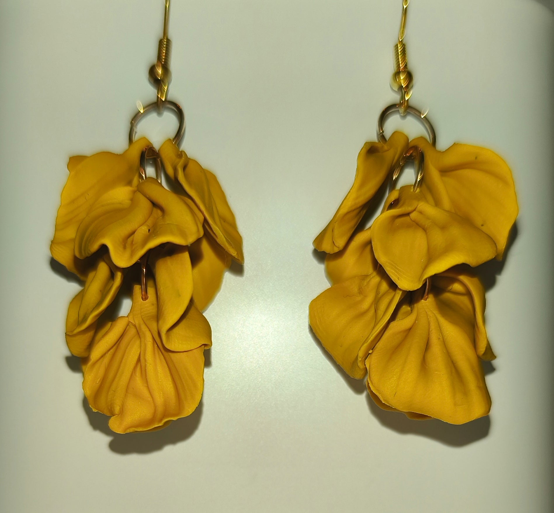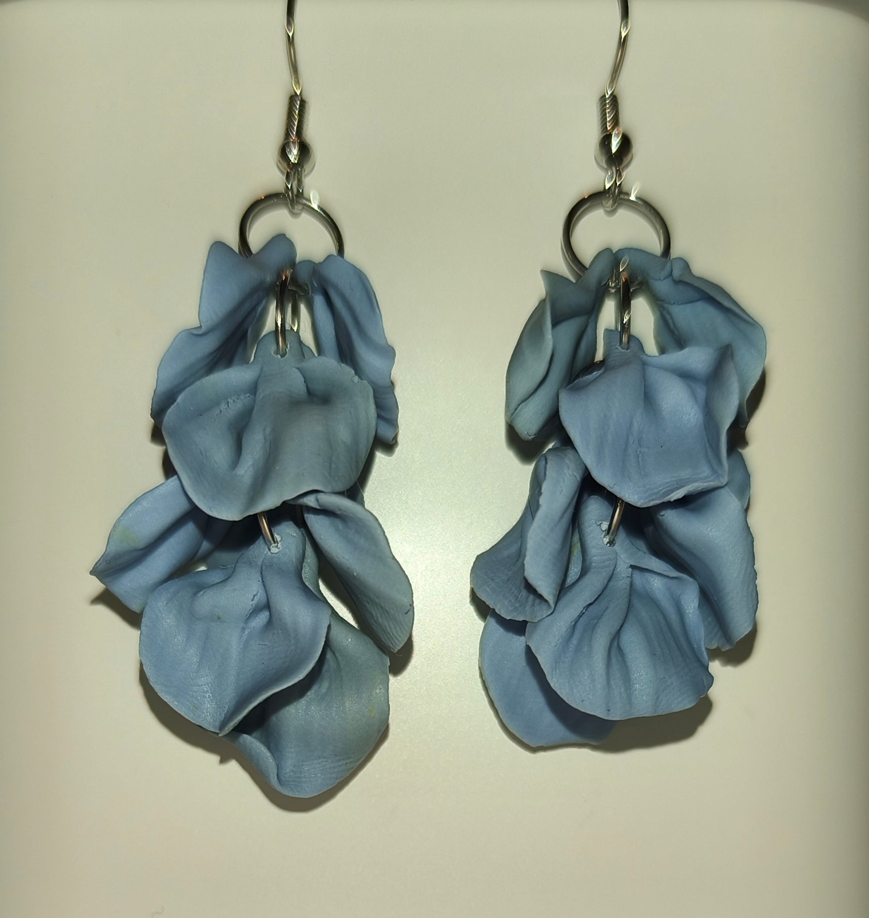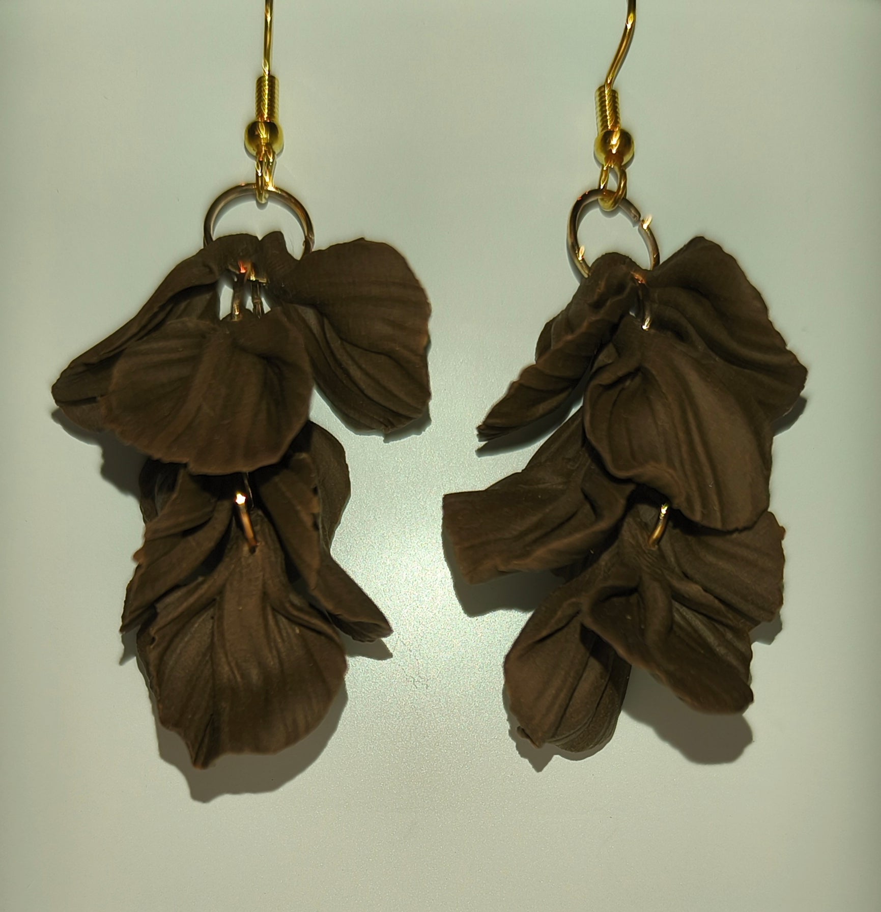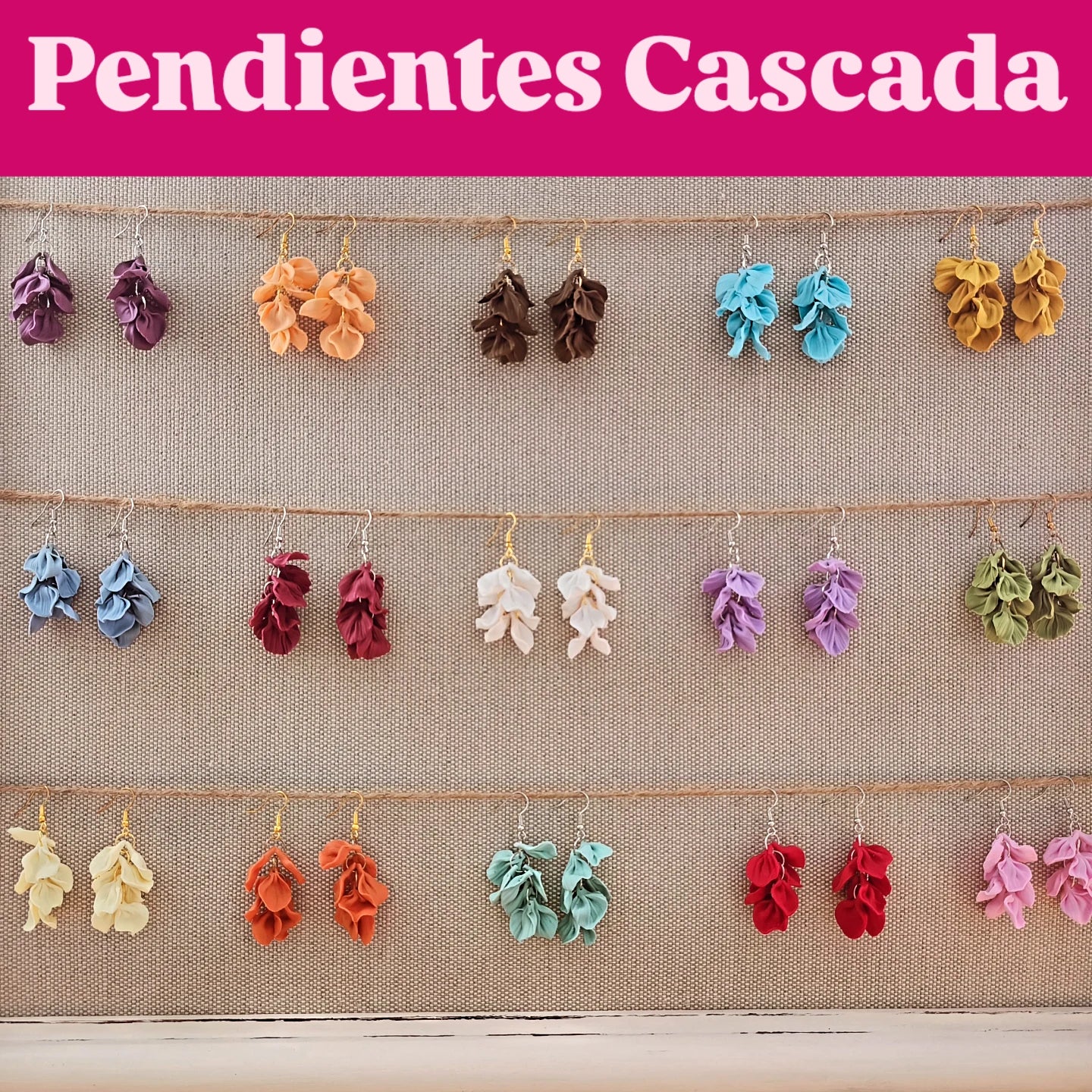 Están realizados con porcelana fina en forma de pequeños pétalos engarzados mediante uniones doradas/plateadas y coronado con un cierre en forma de U.