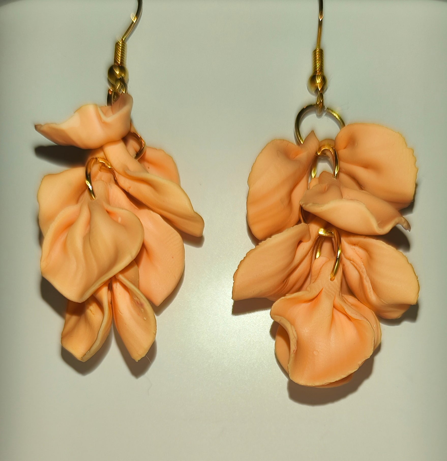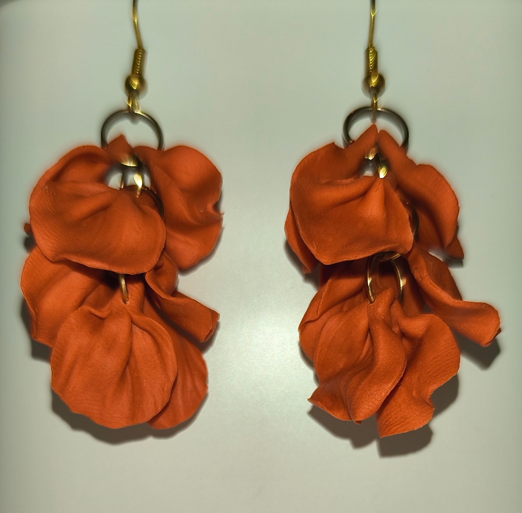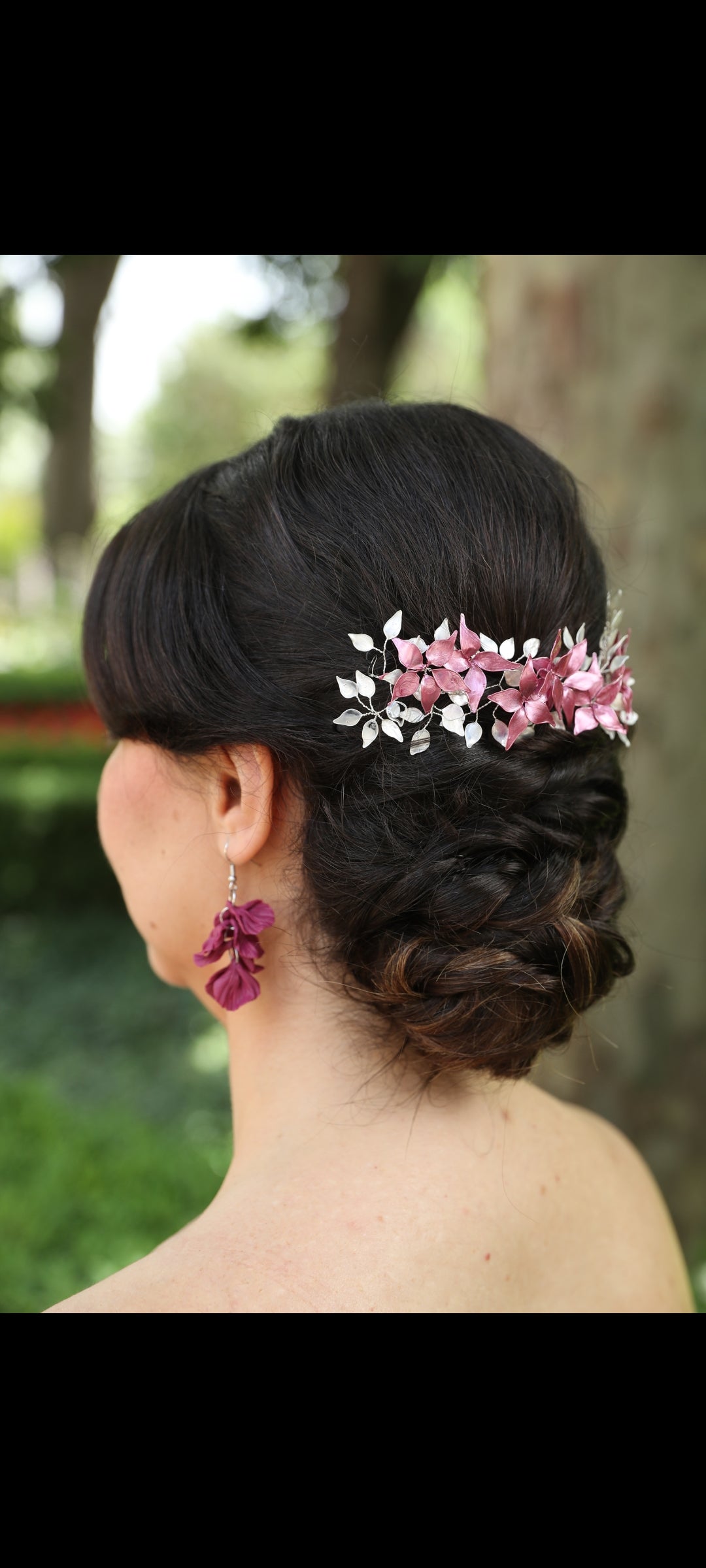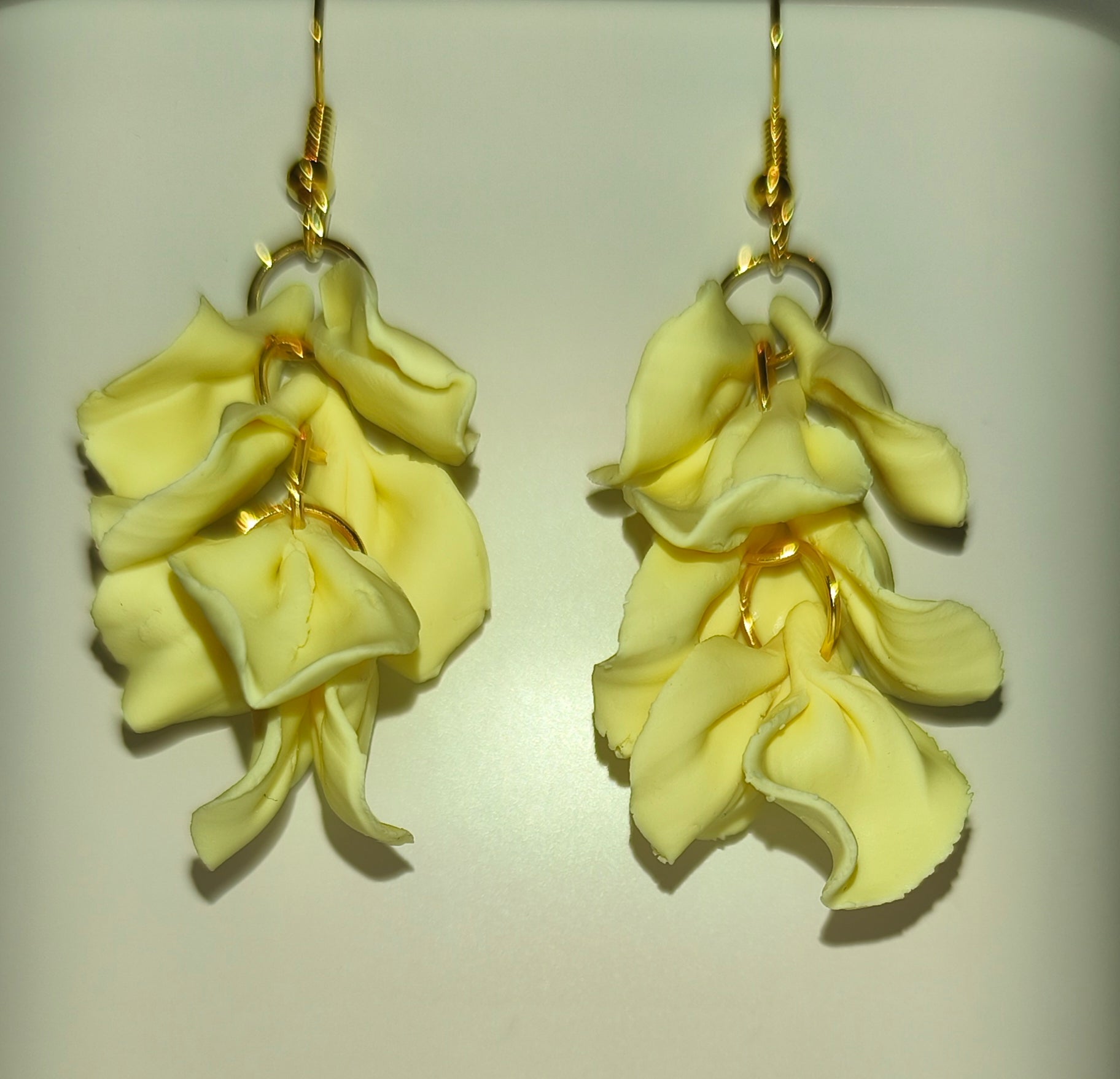 Están realizados con porcelana fina en forma de pequeños pétalos engarzados mediante uniones doradas/plateadas y coronado con un cierre en forma de U.