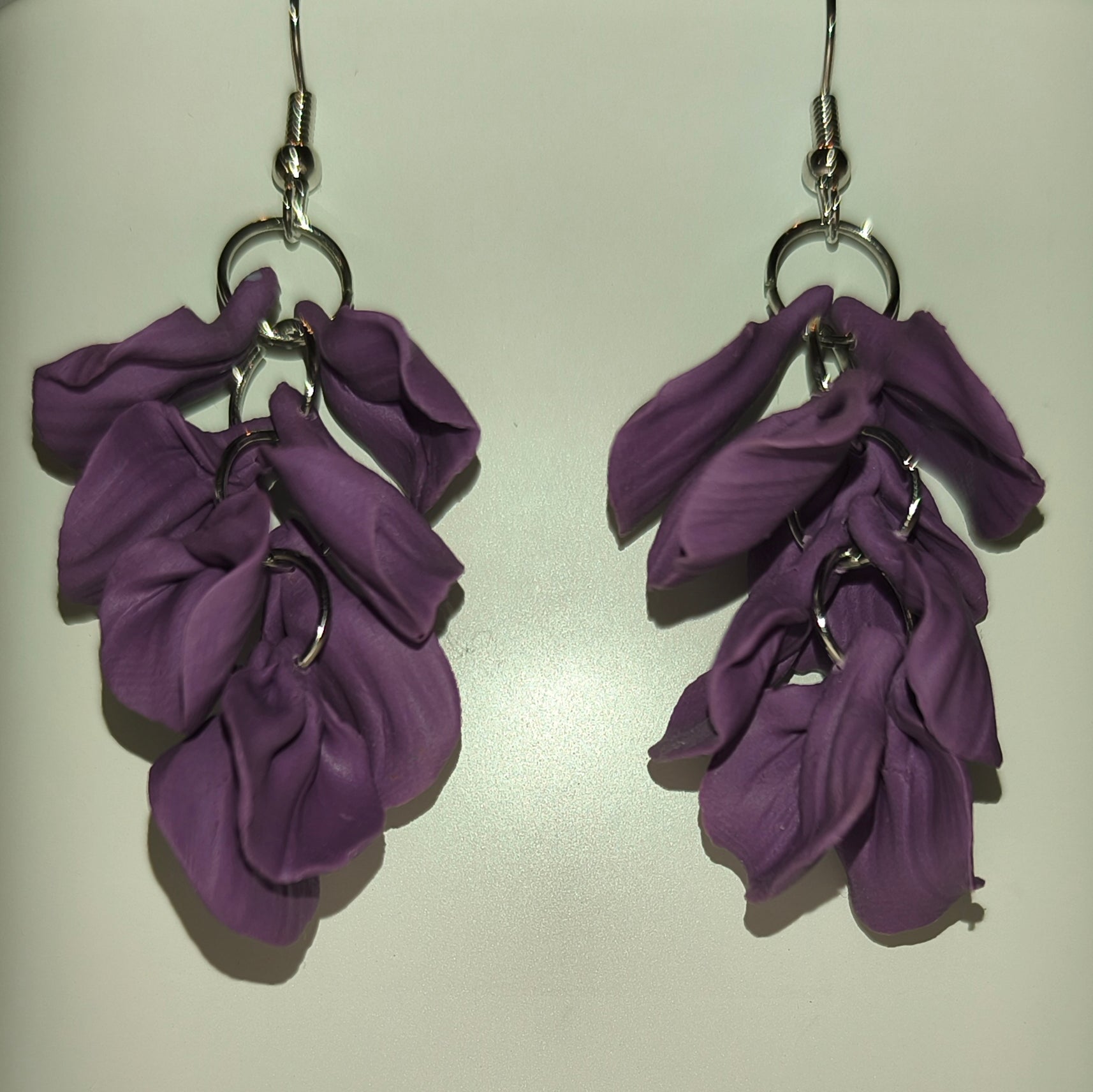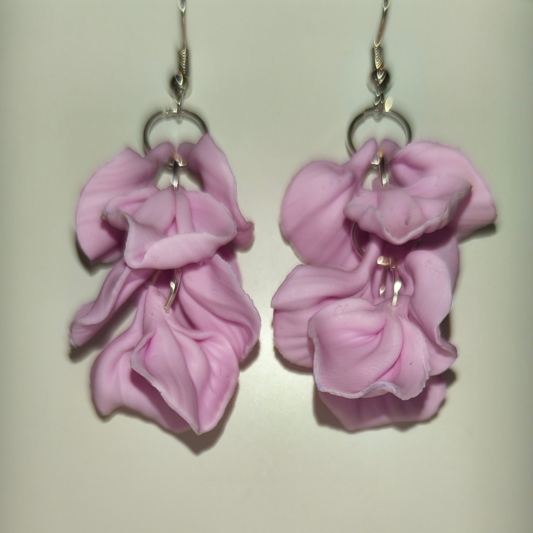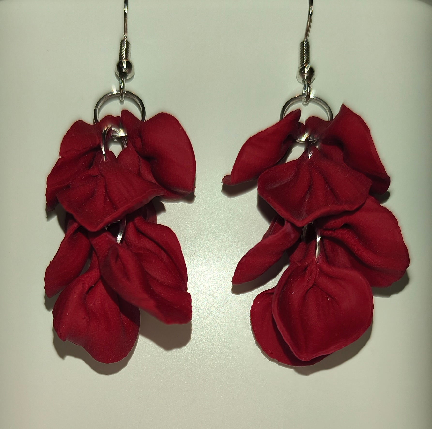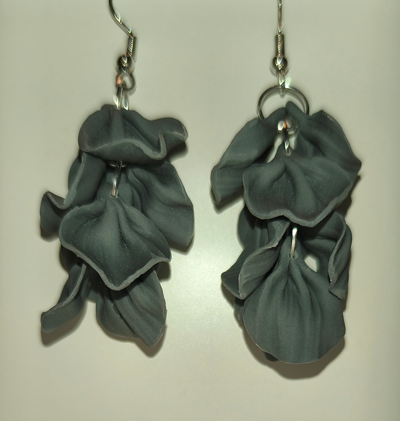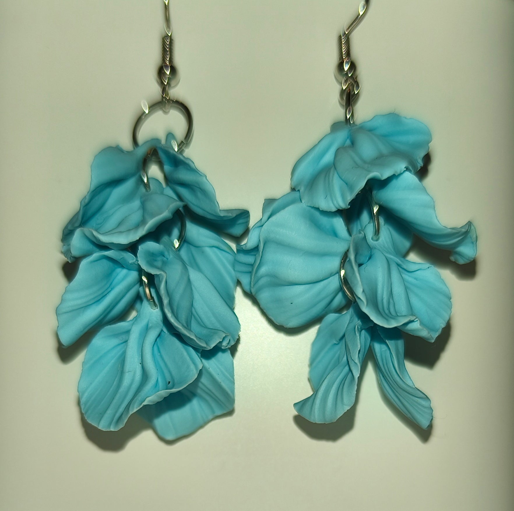 Están realizados con porcelana fina en forma de pequeños pétalos engarzados mediante uniones doradas/plateadas y coronado con un cierre en forma de U.